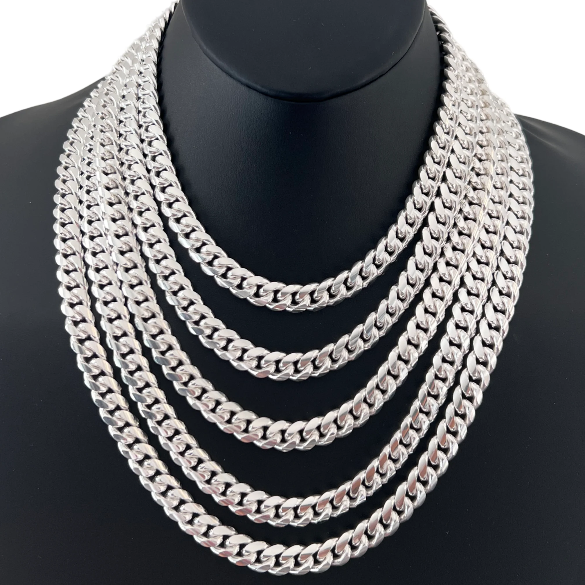 This is a SOLID (NOT HOLLOW), 925 Sterling Silver Curb Cuban Chain. It is highly polished which gives it a shiny finish. This is a non-fading and anti-tarnish chain. It is made from the highest quality material and it will never turn your neck green.