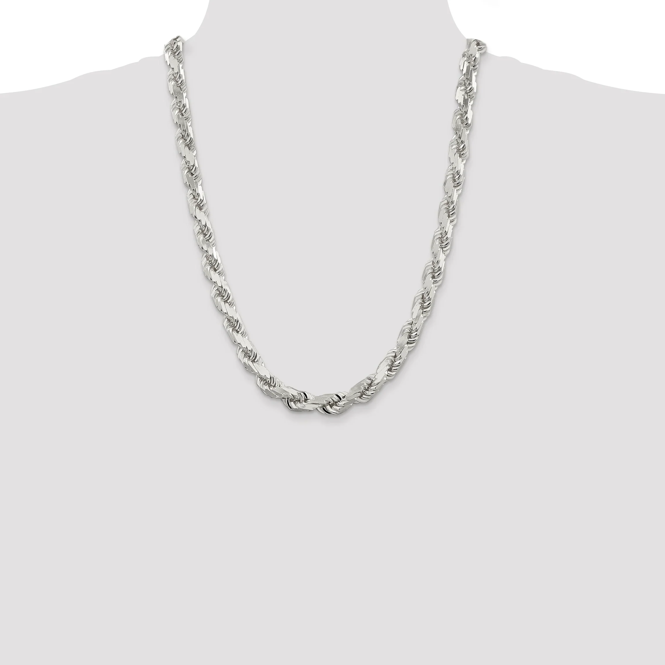 This is a SOLID (NOT HOLLOW), 925 Sterling Silver Rope Chain. It is highly polished which gives it a shiny finish. This is a non-fading and anti-tarnish chain. It is made from the highest quality material
