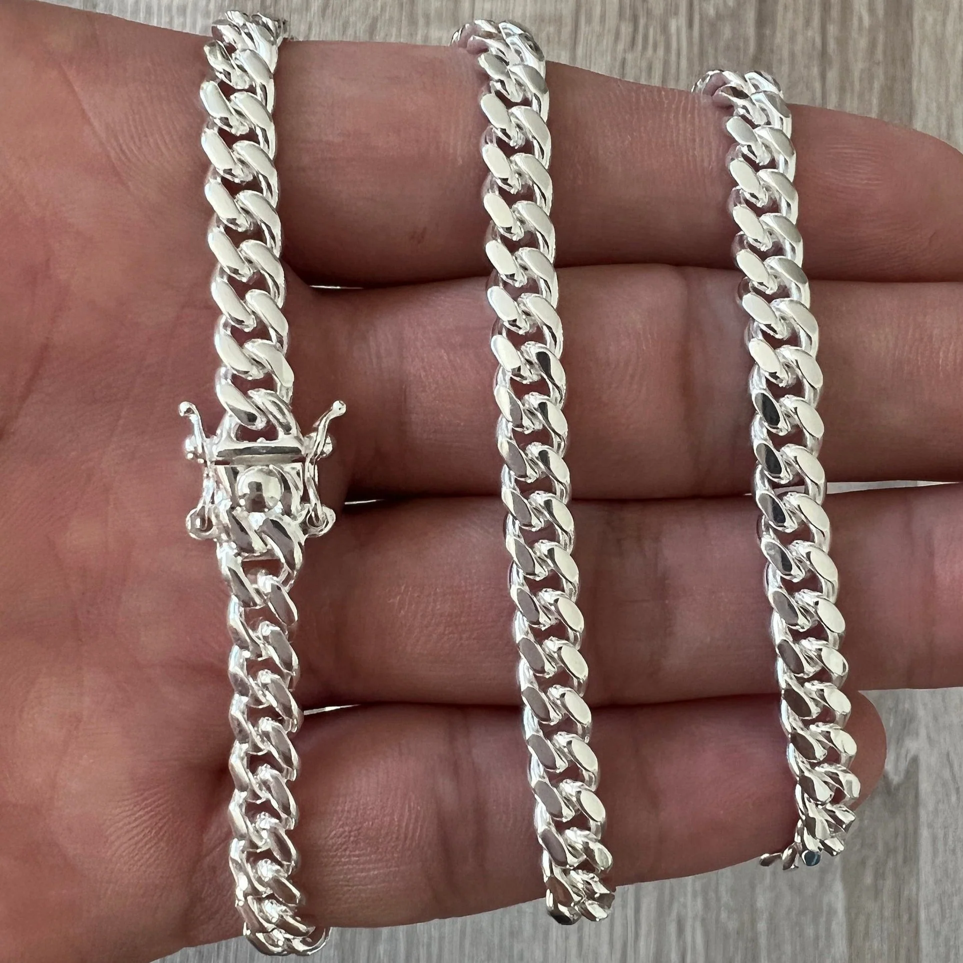 Miami Cuban 925 Solid Cuban Curb Box Lock Chain Sterling Silver Real Men's Women's Unisex Bracelet in 5mm
