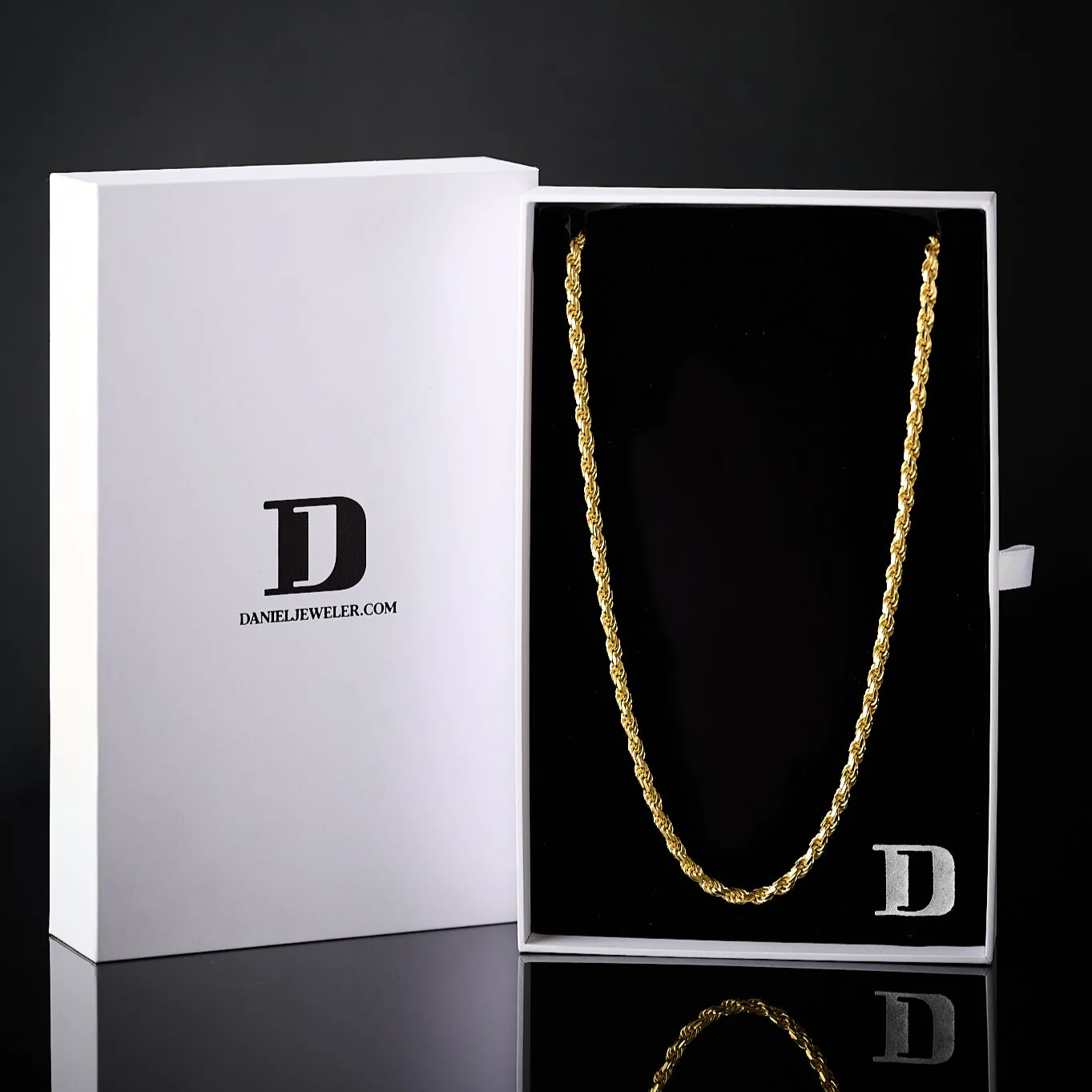 This is a SOLID (NOT HOLLOW), 14K Gold Vermeil over 925 Sterling Silver Rope Chain. It is highly polished which gives it a shiny finish. This is a non-fading and anti-tarnish chain. It is made from the highest quality material and it will never turn your neck green.